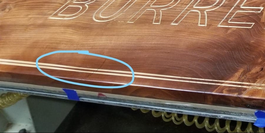 For engraving into irreplaceable slabs, it is our policy to always do a test cut to verify the cuts. The purpose of the test is not to create a beautiful result, but to find any errors in the drawing or coding, which could ruin an irreplaceable piece of wood.